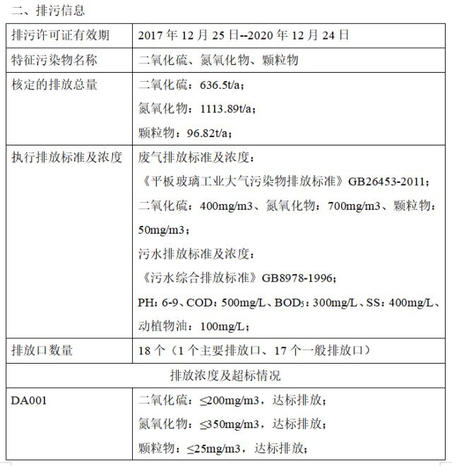 咸宁南玻玻璃有限公司2020年环境信息公开表