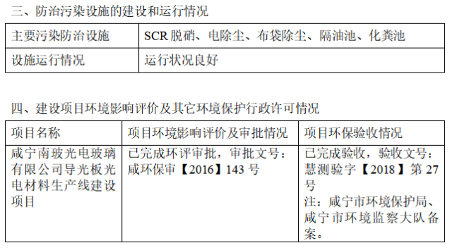 咸宁南玻光电玻璃有限公司环境信息公开表