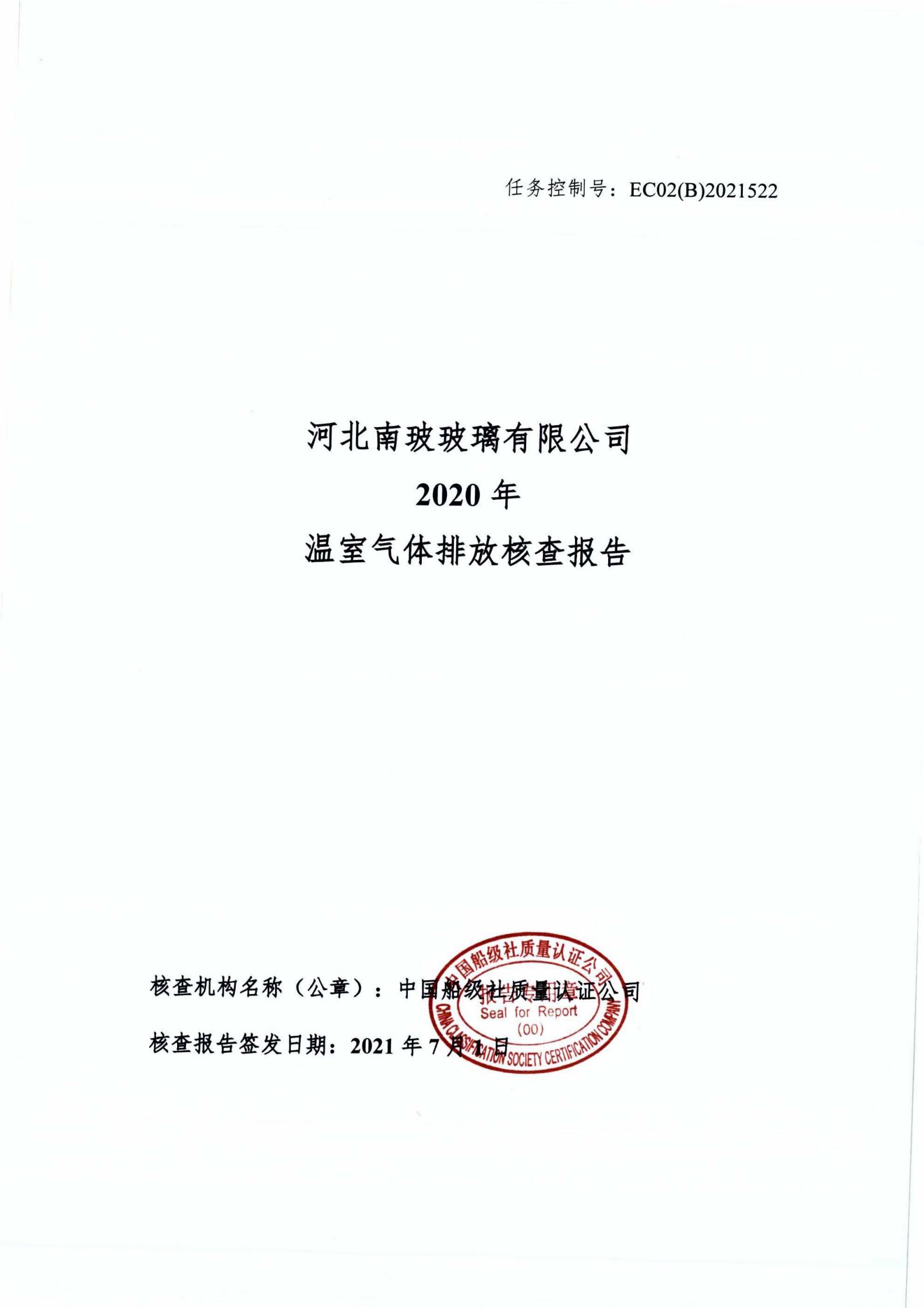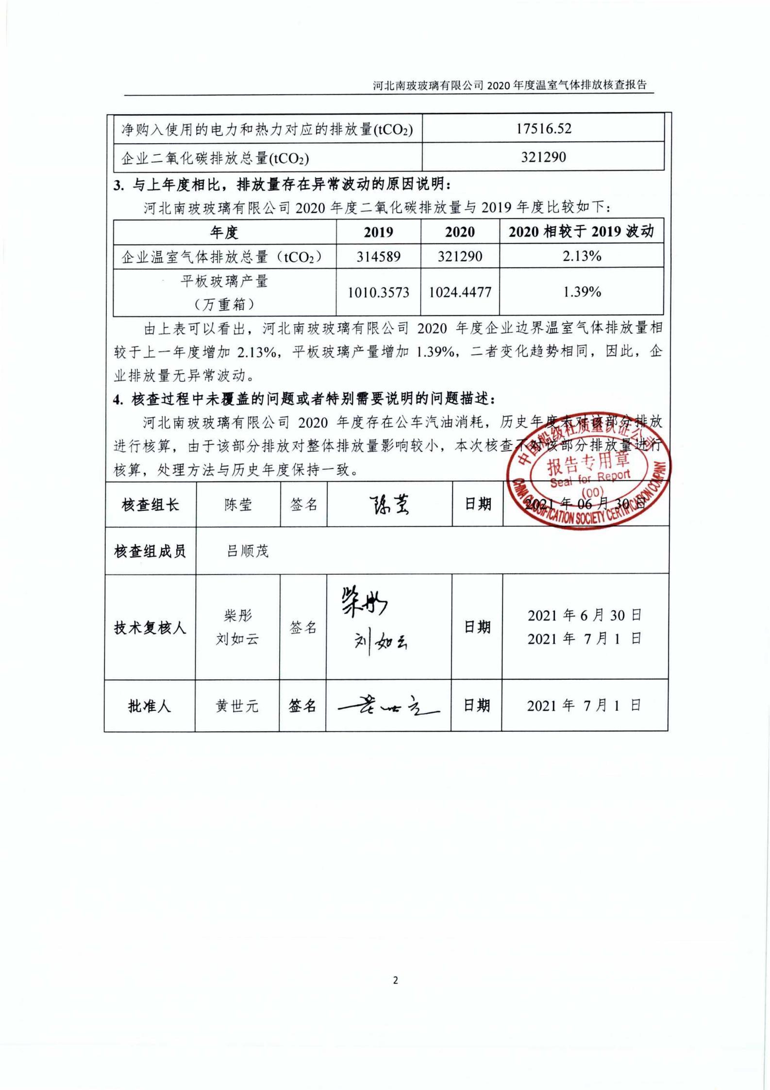 河北南玻玻璃有限公司2020年温室气体排放核查报告