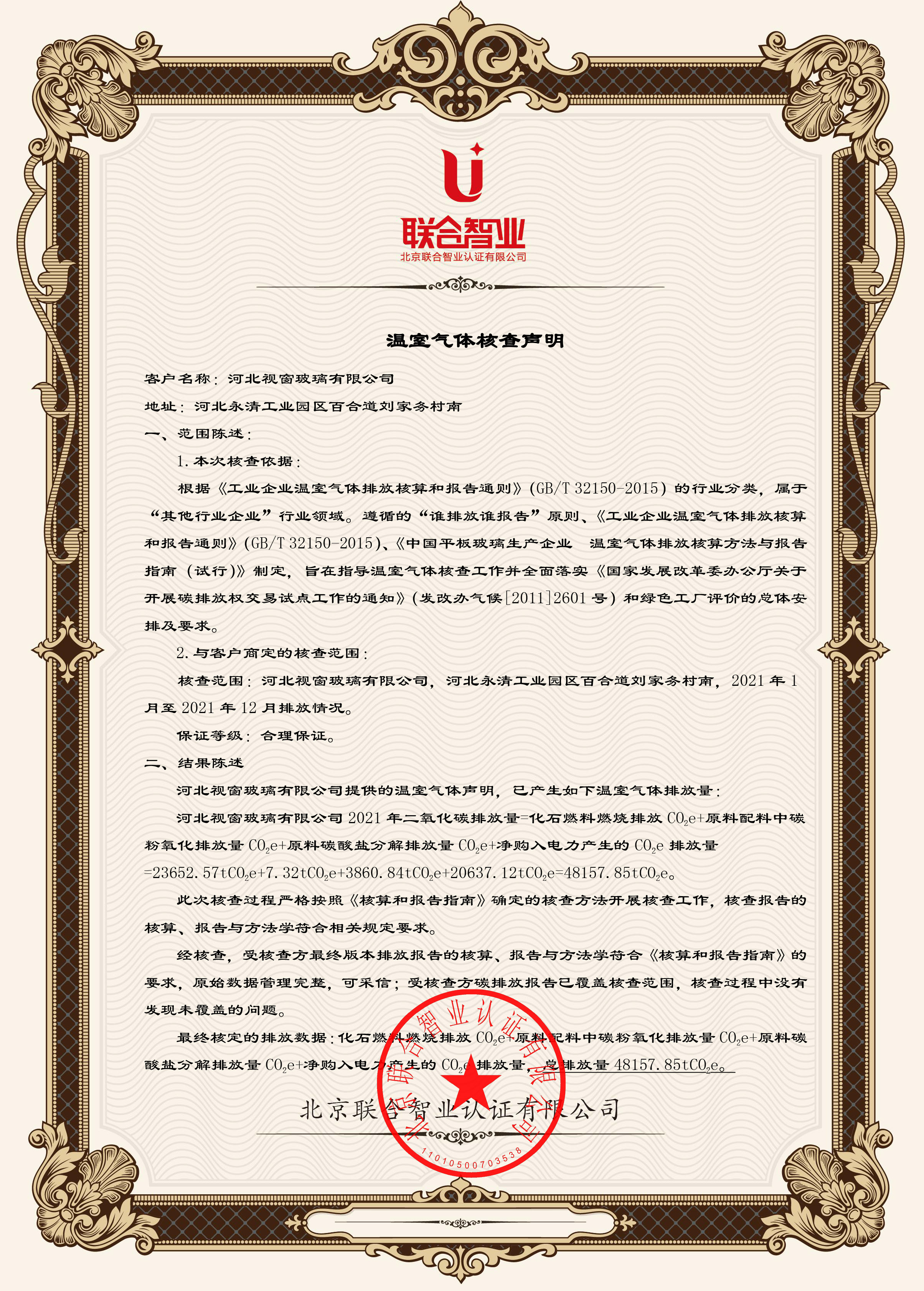 河北视窗温室气体核查声明