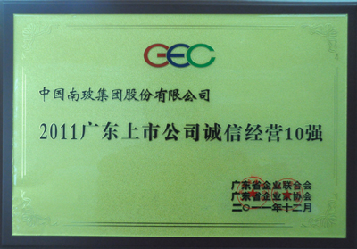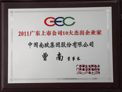 12月23日下午,2011广东企业领袖高峰会暨“第八届广东上市公司10强、广东房地产10强”发布会在广州召开。南玻集团凭借自身在营业收入、品牌价值、公众形象、社会责任、诚信经营及竞争优势等方面的突出表现荣登榜单,荣获“2011广东上市公司综合实力10强”、“2011广东上市公司诚信经营10强” 两项大奖,同时集团董事长、CEO曾南被评为“2011广东上市公司10大杰出企业家”。