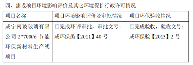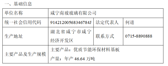 咸宁南玻玻璃有限公司2020年环境信息公开表