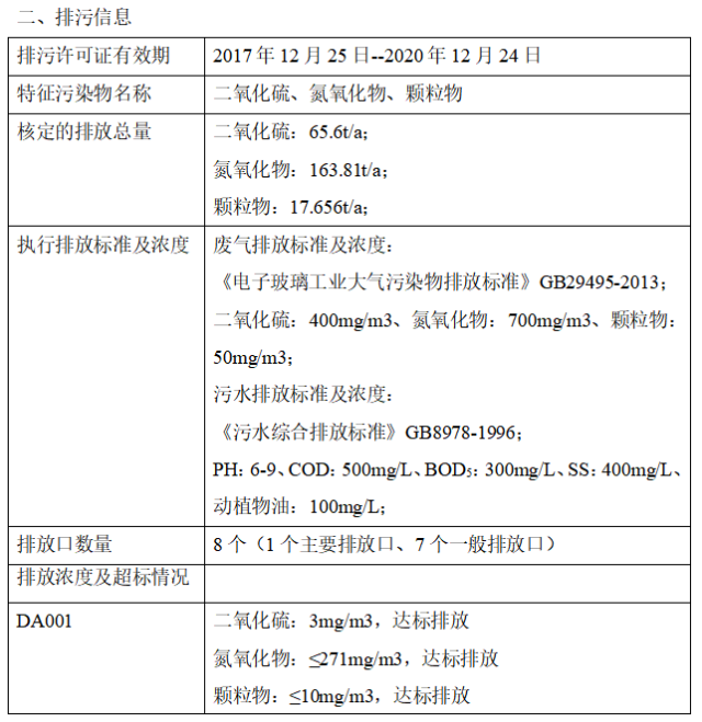 咸宁南玻光电玻璃有限公司环境信息公开表
