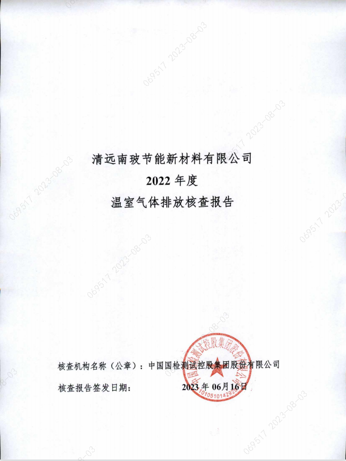 清远南玻节能新材料有限公司2022年温室气体核查报告