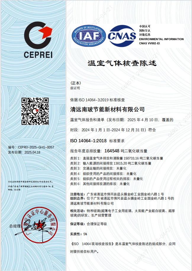 清远南玻节能新材料有限公司温室气体排放核查报告